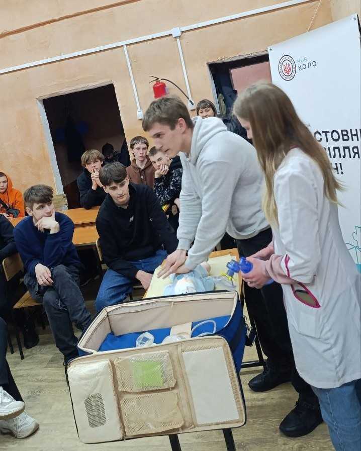 У цей день теорія поступилася місцем практиці. Під час тренінгу, що відбувся під гаслом «БЕЗПЕКА – СПРАВА КОЖНОГО», майбутні медики продемонстрували та спільно з ліцеїстами відпрацювали критично важливі навички:
