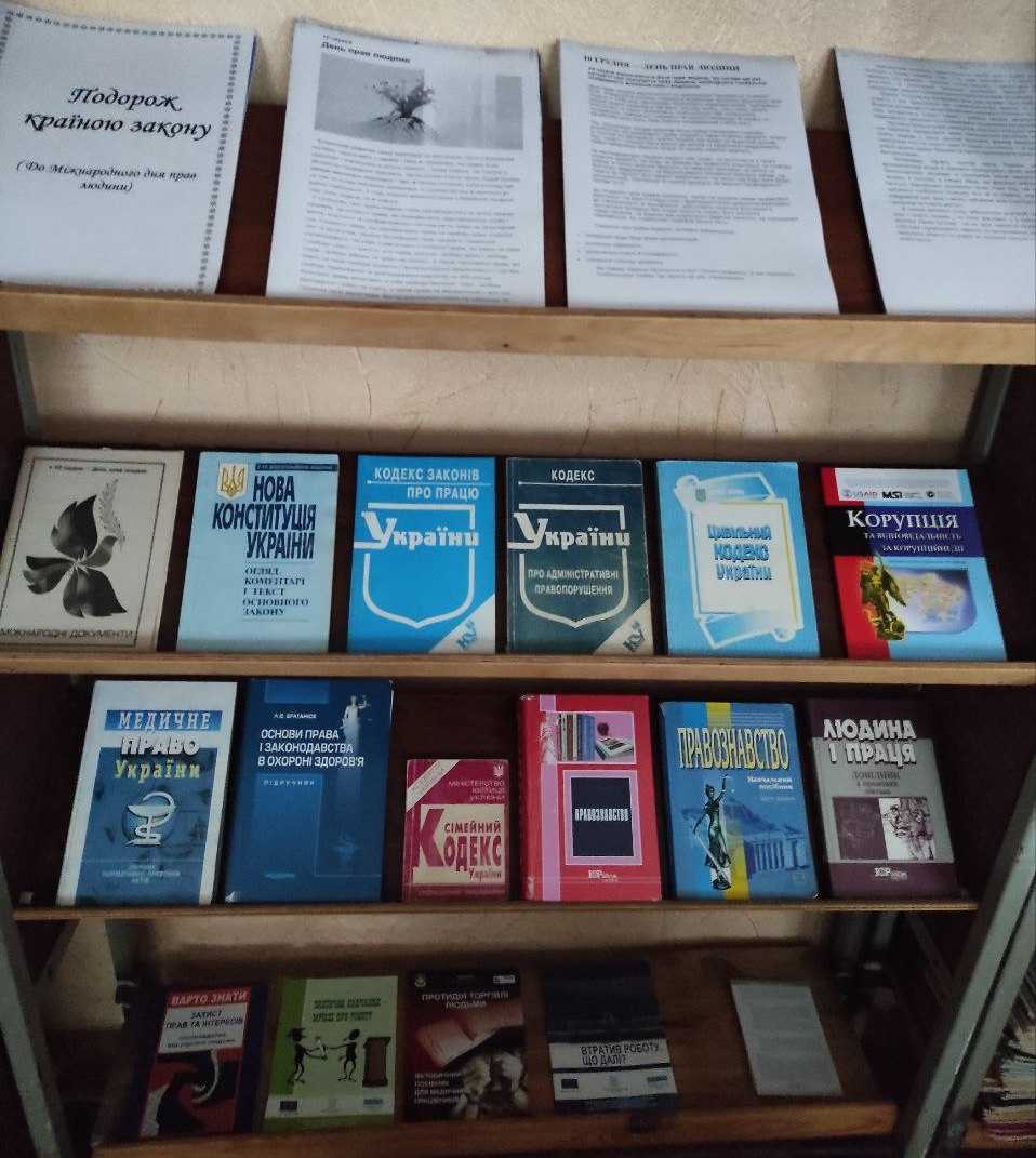 В читальній залі бібліотеки коледжу оформлена книжкова виставка «Подорож країною закону».