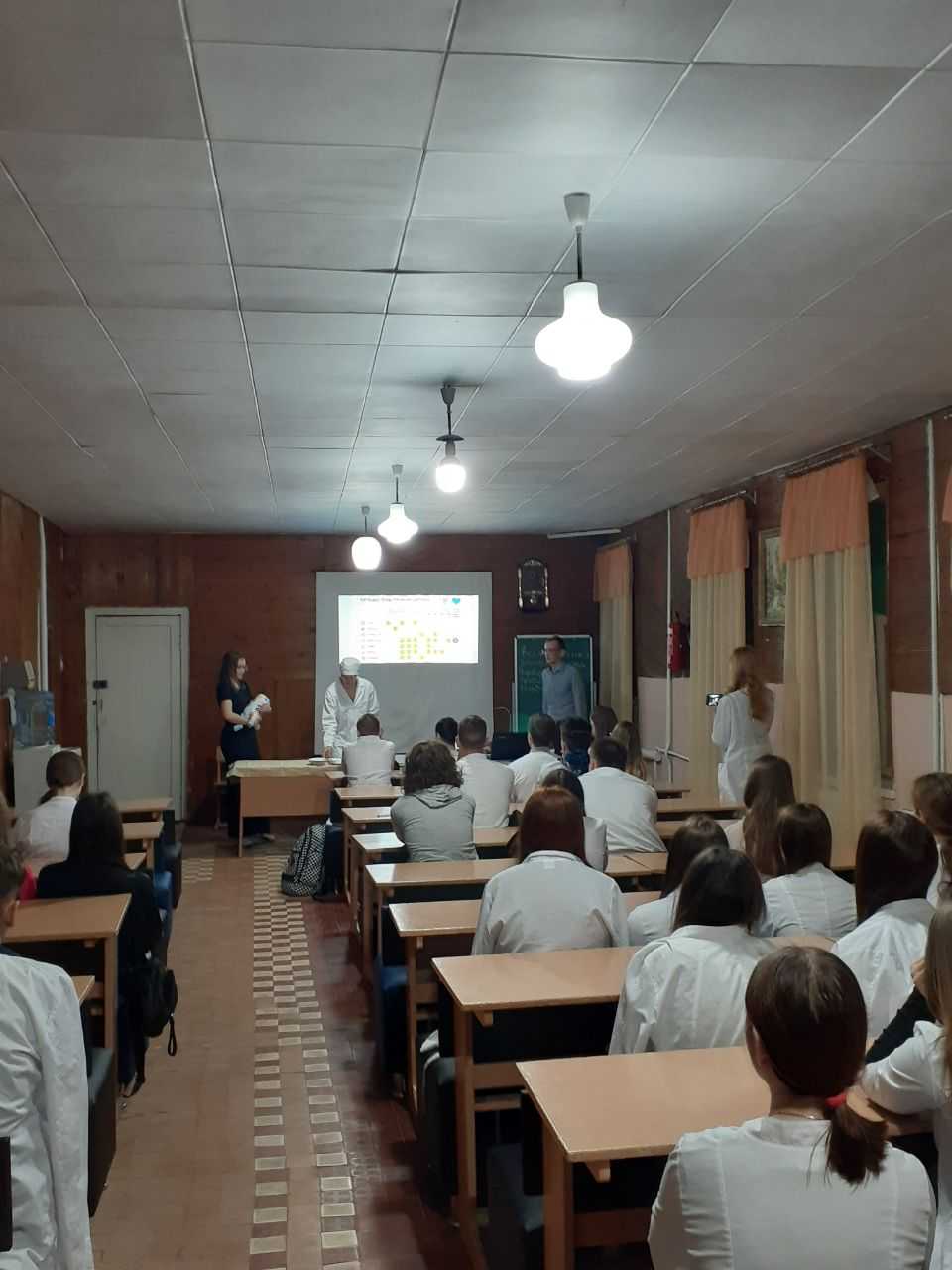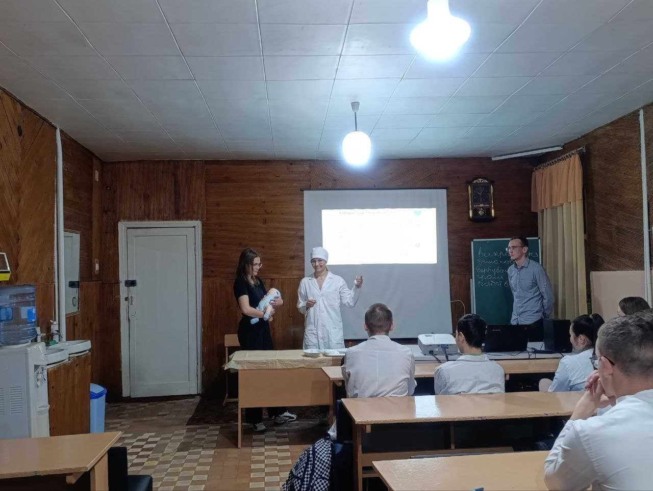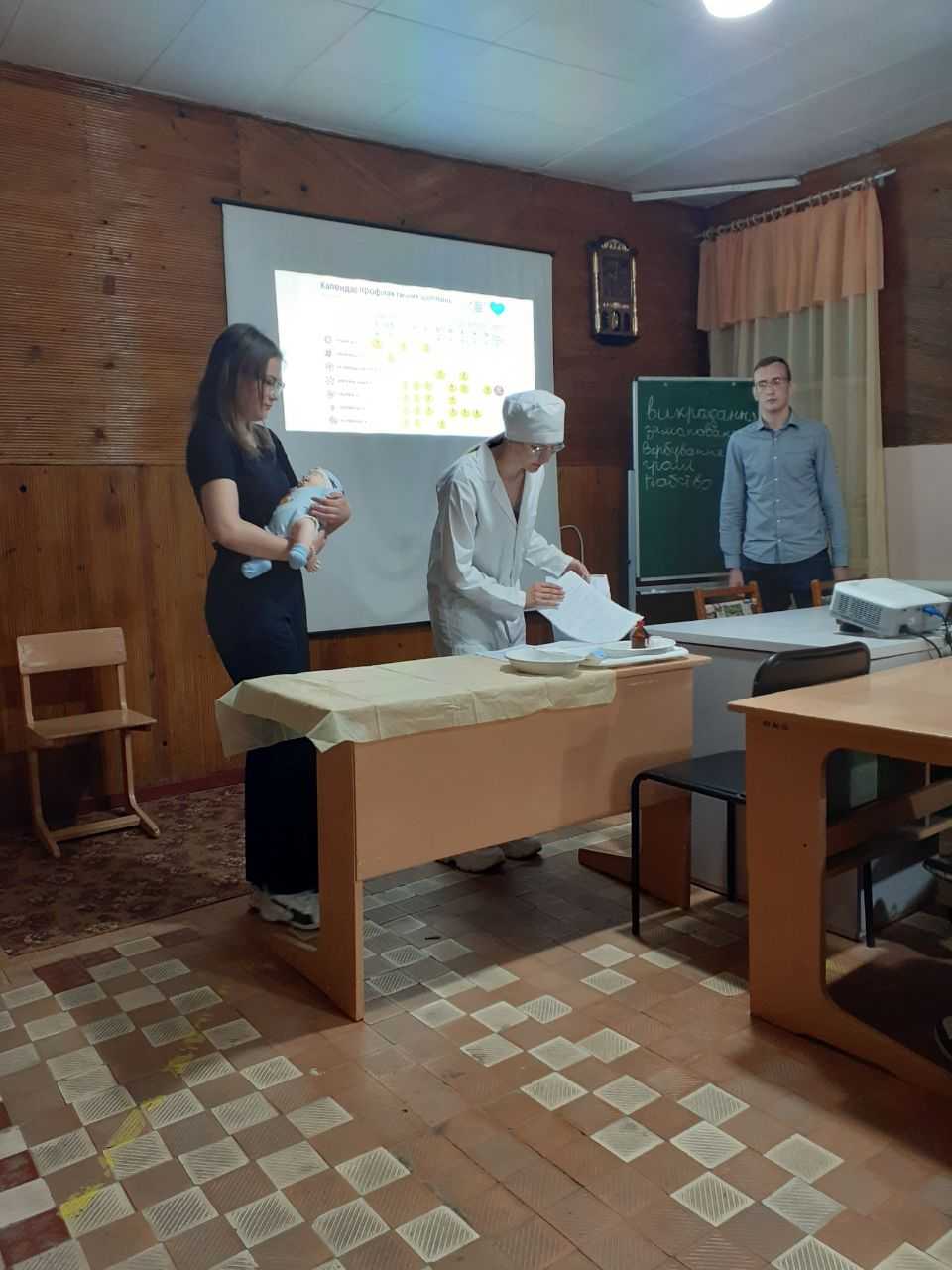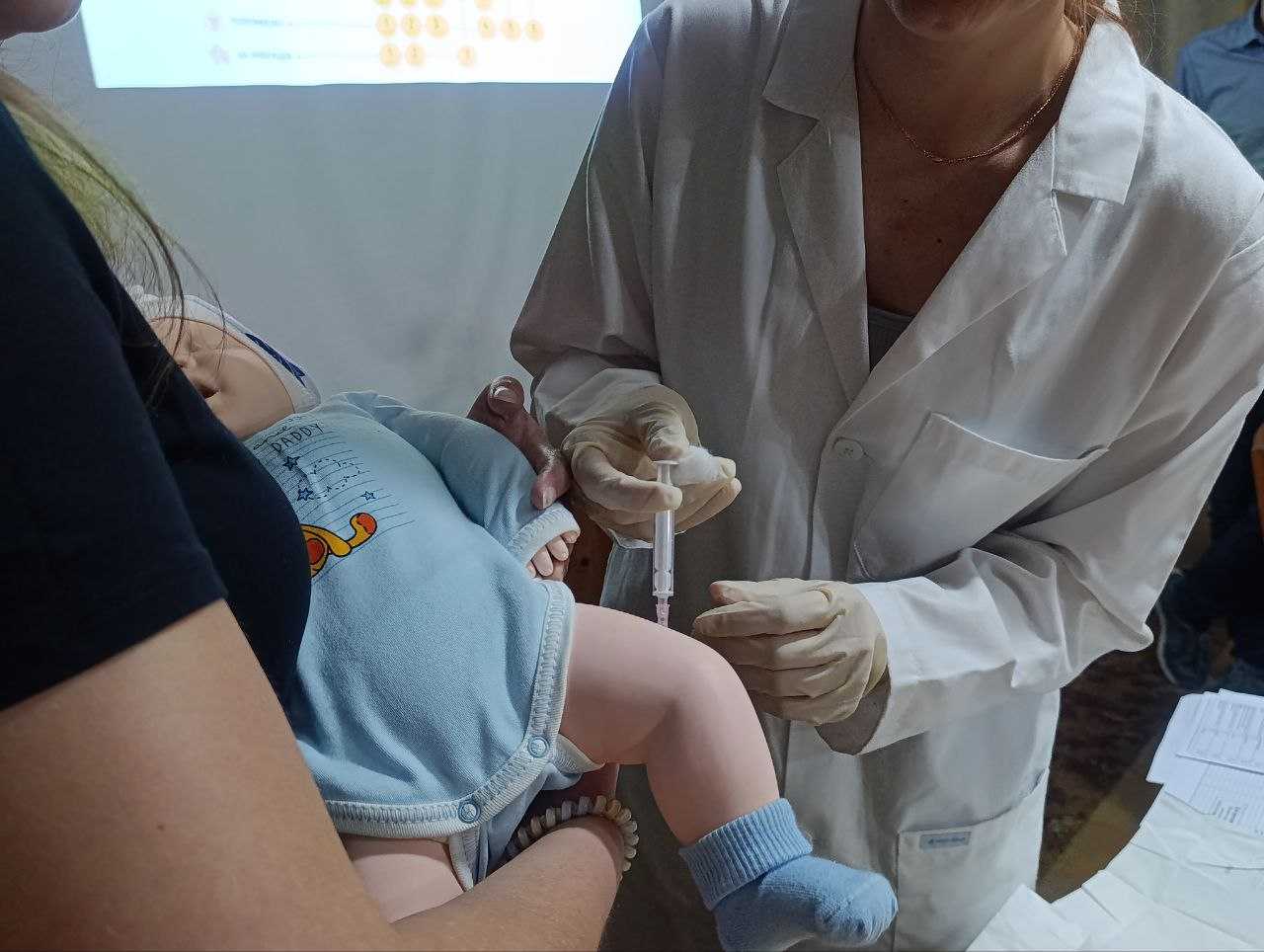 Другою частиною заходу став майстер-клас “Техніка проведення щеплення від дифтерії”, проведений студентами 3Бс групи. Майбутні медичні сестри продемонстрували підготовку до проведення щеплення (перевірка та відновлення вакцини, підготовка інструментарію, інформування та отримання згоди матері на щеплення), техніку внутрішньом’язового введення вакцини на манекені.