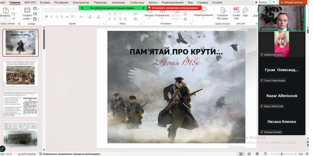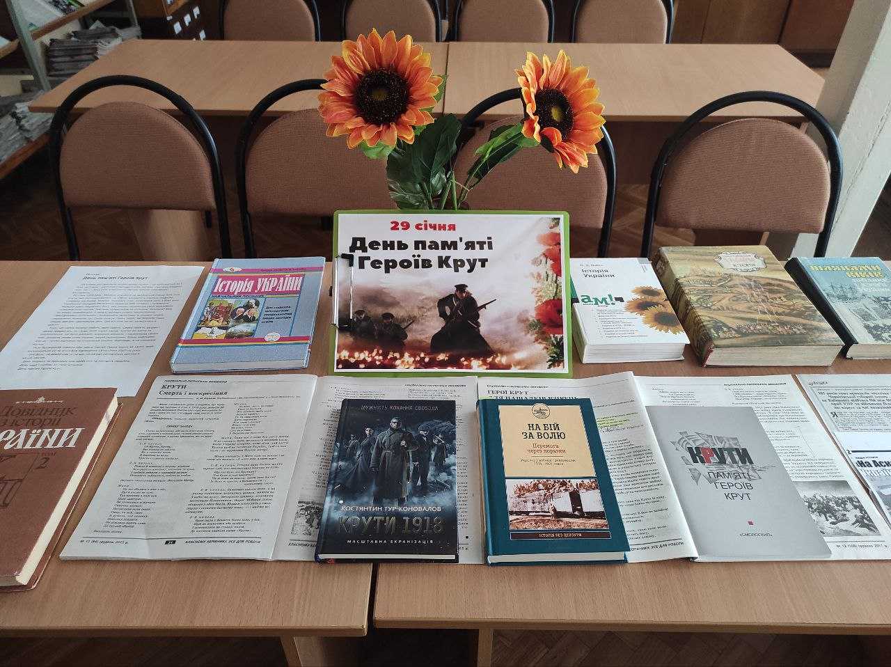 Керівники груп провели патріотичні години на тему «Крути – і сум, і біль, і вічна слава України». У читальній залі бібліотеки оформлено книжково-ілюстративну виставку «Крути: трагедія і гордість України». Також студенти разом із наставниками переглянули історичний фільм-екшн «Крути 1918».