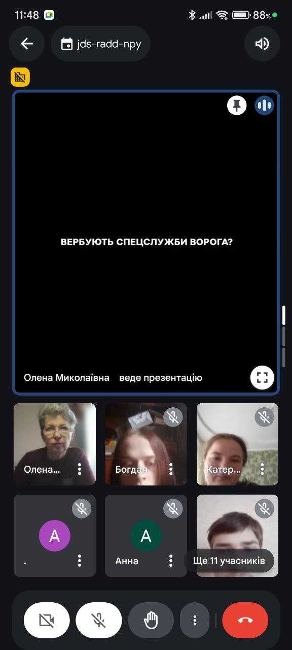 В умовах гібридної війни, яку веде росія протии України, особливої актуальності набуває проблема вербування української молоді російськими спецслужбами через Інтернет. З метою підвищення обізнаності студентів щодо цієї загрози та навчання їх методам протидії в коледжі були проведені години спілкування з керівниками груп щодо протиправних дій та правил використання цифрових ресурсів.