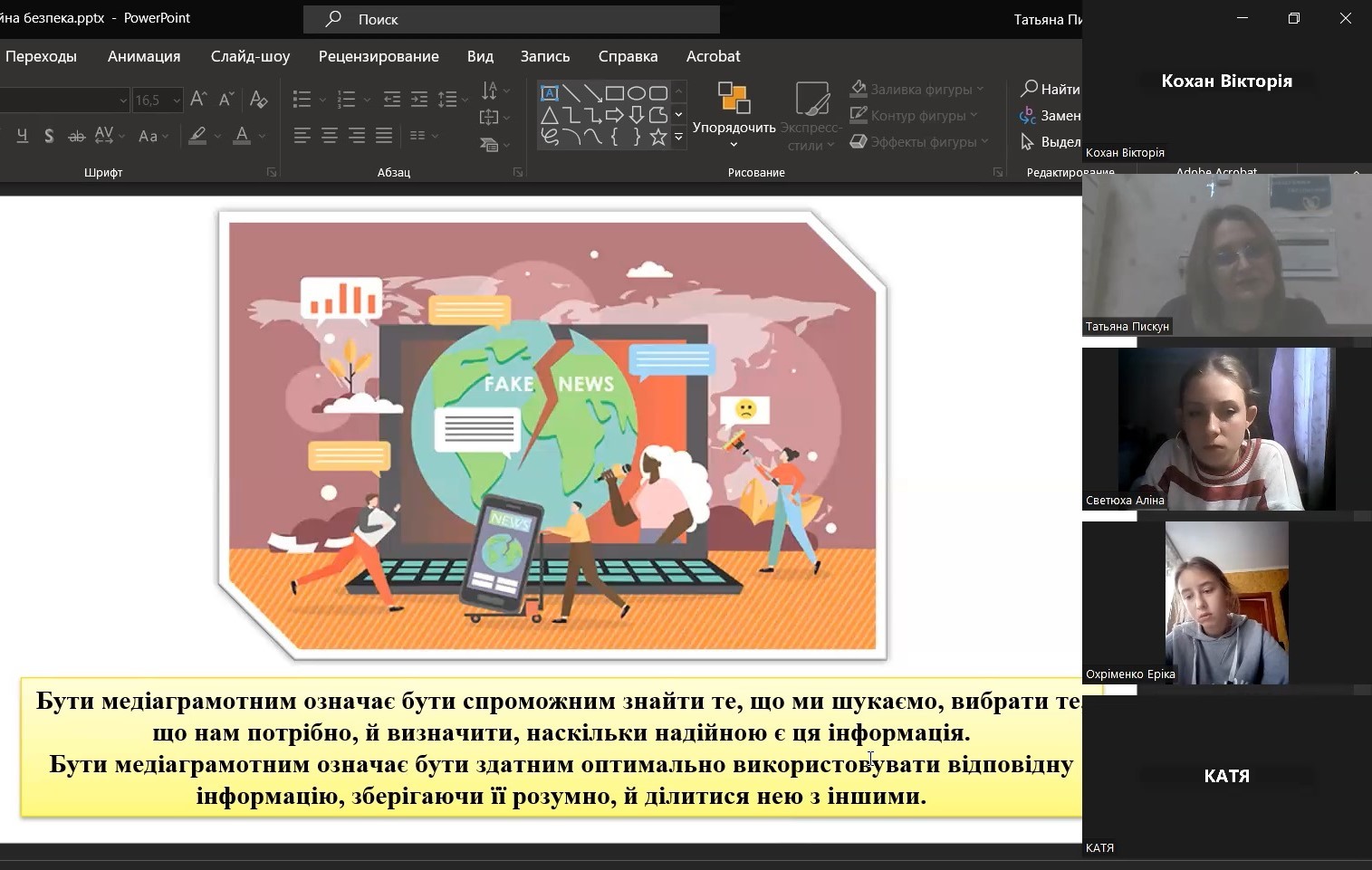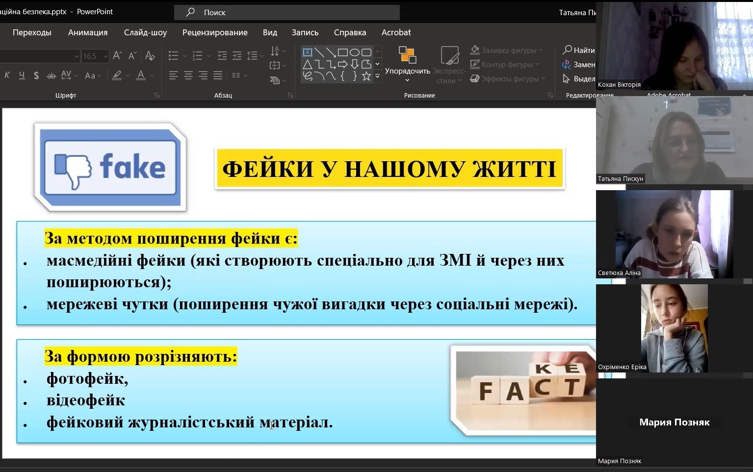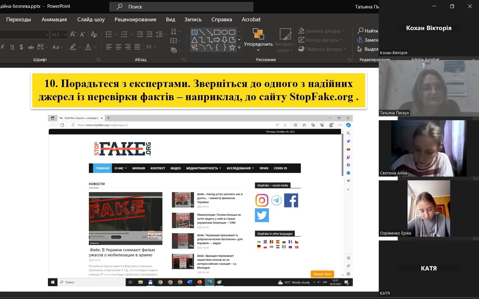 Тому, щоб допомогти вберегтись від епідемії фейків та не потонути в інформаційному дощі, для студентів 1-го курсу була проведена виховна година на тему: «Упіймати фейк: 10 способів розпізнати недостовірну інформацію в Інтернеті».